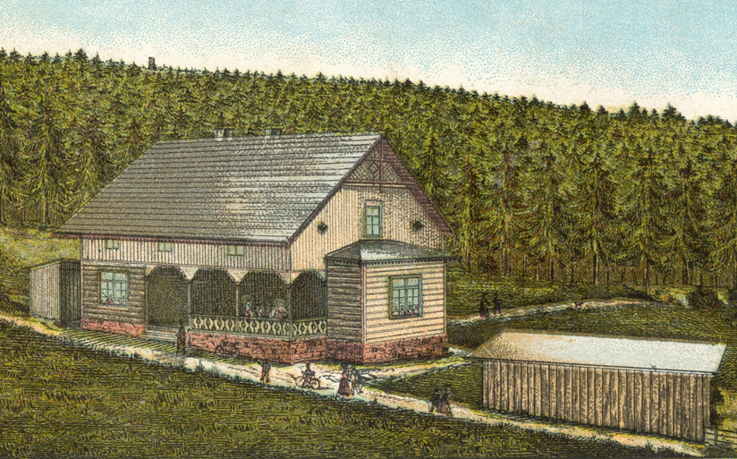11. 4. 1897 eröffnet, mit 2 kleinen Gasträumen und 4 Fremdenzimmern. Eigentümer war der Eulengebirgs-Verein (EGV). Das Grundstück wurde von Carl Wiesen gestiftet, dem dafür später das "Wiesendenkmal" unterhalb der Baude errichtet wurde.