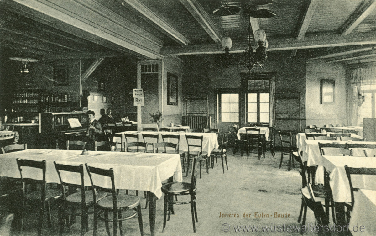 Die Eulenbaude konzentrierte sich mehr auf die Verpflegung von Wanderern und Skiläufern als auf Übernachtungen. Die zeigt die Bettenzahl (anfänglich 12 Betten, später 16), aber über 300 Sitzplätze in der Gastronomie.