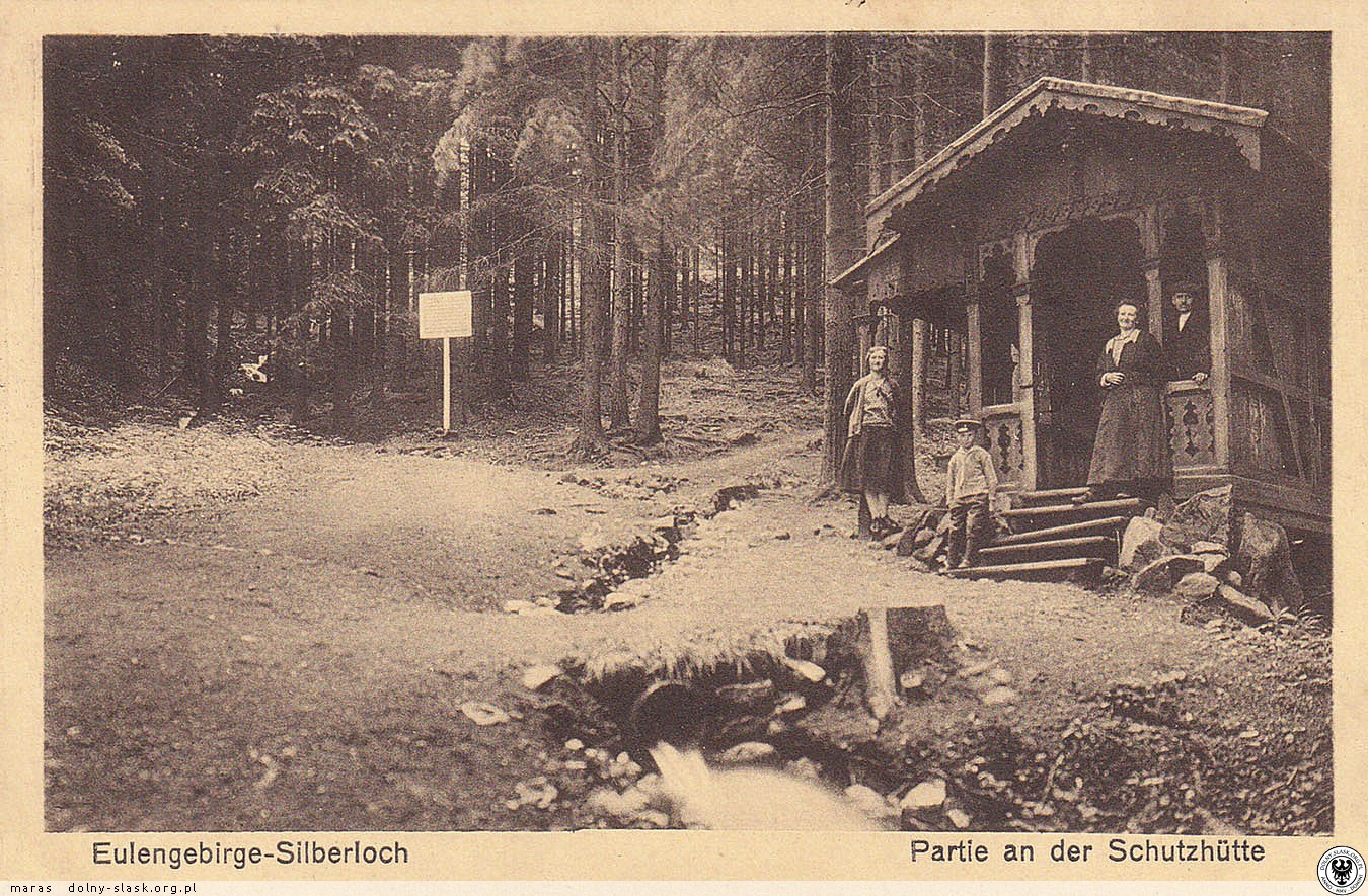 "Die Strasse von Wüstewaltersdorf und Zedlitzheide läßt mit den letzten Häusern auch das geschäftliche Leben, wie es die beiden Fabrikdörfer durchpulst, zurück. Langsam windet sie sich zu den "Sieben Kurfürsten" hinan. Die Wanderer biegen aber schon hinter den letzten Häusern von Zedlitzheide von der Strasse ab. Der Eingang zum Bergwalde ist nur eine kleine Pforte, die aber den Wanderer einen Blick in ein Märchenland tun läßt. Geradenwegs quert der Pfad aber noch einmal die Straße, um sich alsdann wieder in der heiliegen Waldesstille zu verlieren. Abseits vom Wege bilden Fichten einen verwachsenen dämmrigen Gang, der zum "Silberloch" führt. Regungslos verharren die grünen Wipfel. Nur hin und wieder steigt ein halbverlorenes Raunen aus den Tiefen des Waldes und umgeistert den Felsen, in den ein mannshoher, schmaler Gang tief hineinführt. - "