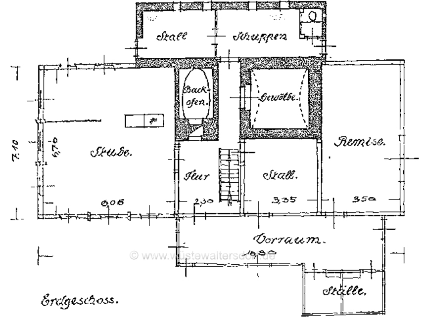 Der Fußbodenbelag des Tages- und der Schlafräume sowie des Führerzimmers besteht aus gehobelten und geölten Dielbrettern, der Fußboden der Kochküche und des Flures aus Zementestrich. Der Vorraum sowie die Abort- und Waschräume sind mit braunen Eisenklinkerplatten gepflastert.
