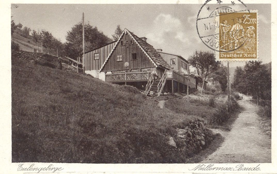 | Eine Ansichtskarte der alten Müllermaxbaude von 1923 | |