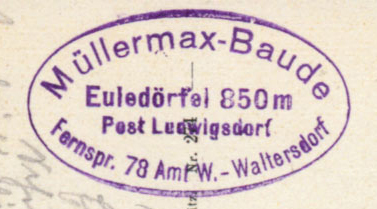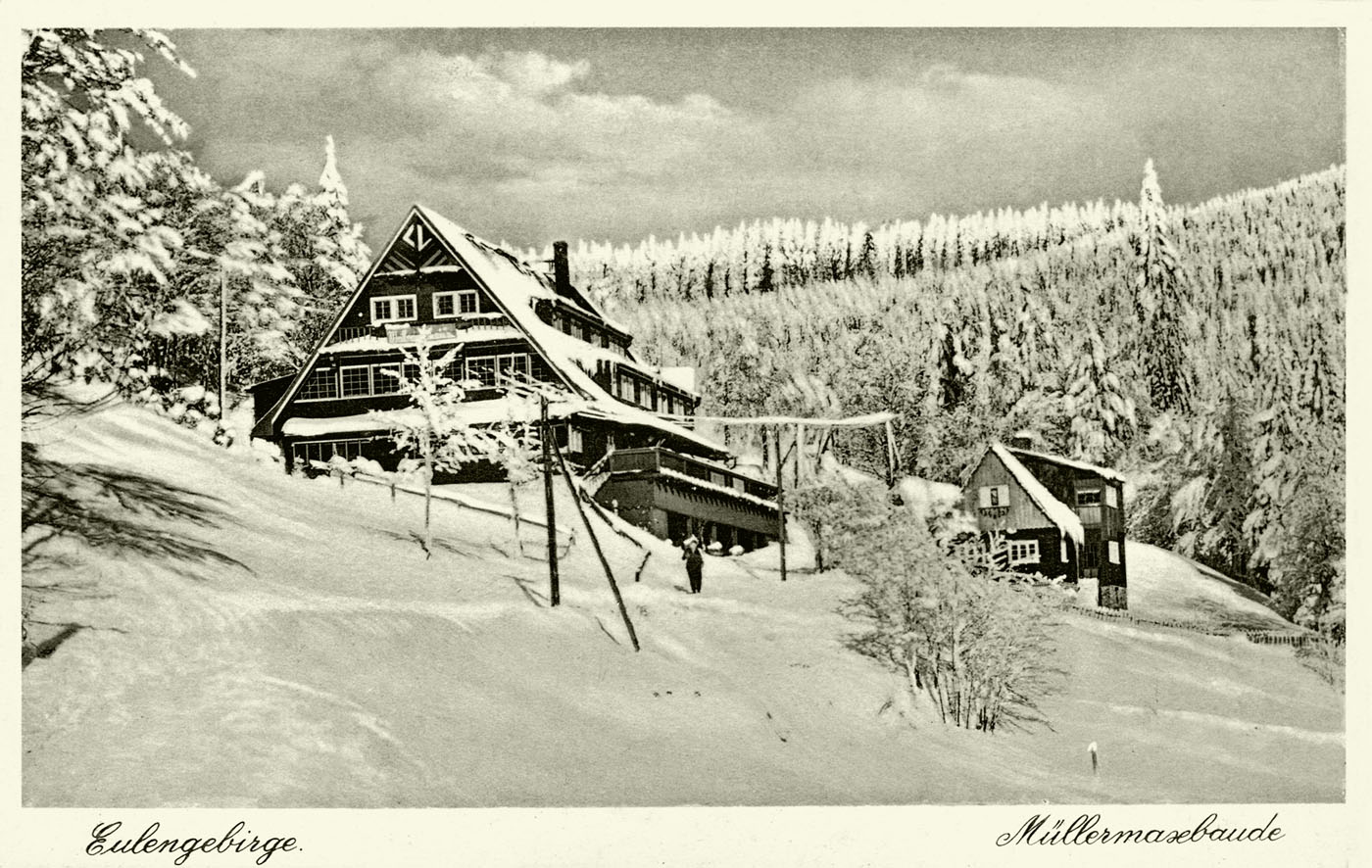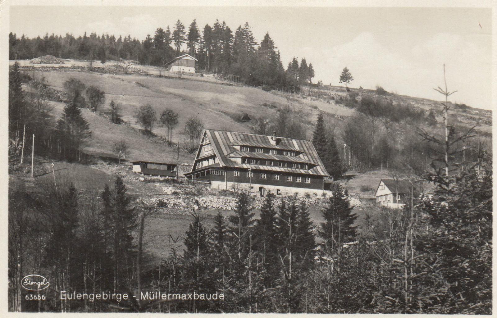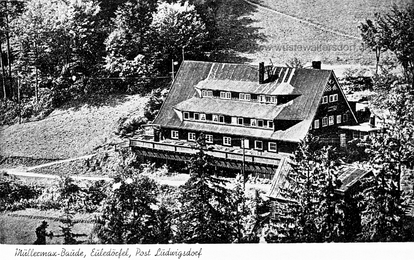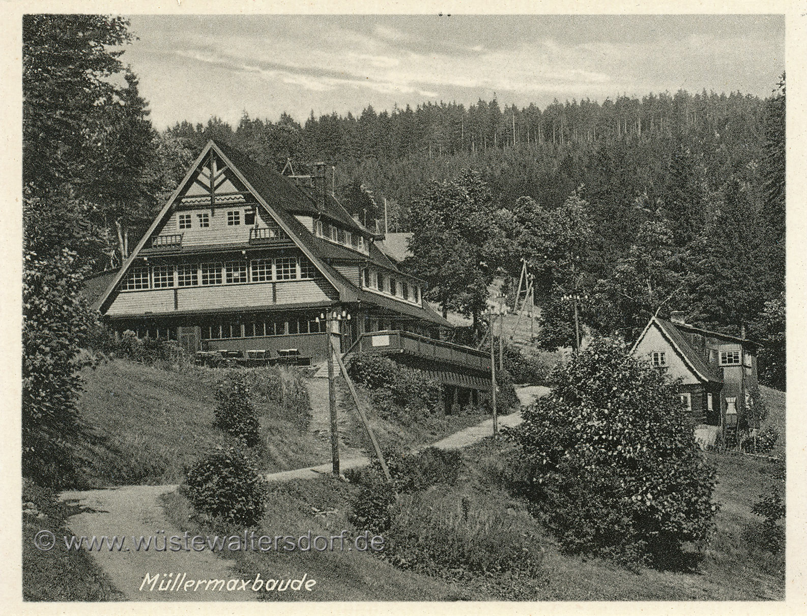 Diese Baude, wurde wie der Name schon sagt, von Max Müller erbaut. Er war weit herumgekommen und lies sich dann im Euledörfel nieder, Natur, Landschaft und Berge beeindruckten ihn. - Anfang der 1920er Jahre kaufte er ein altes Weberhaus und und am 1. Juni 1922 wurde darin eine Baude eröffnet, mit 20 Betten und Sitzplätzen für 60 Personen auf der Veranda. - Das Haus wurde nach und nach "geflickt" und ausgebaut.