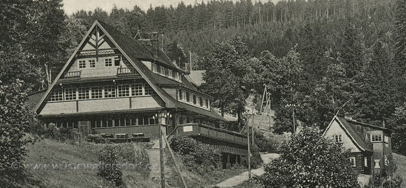 1932 finden wir in (1) folgende Angaben: "Haus 14, Fernsprecher Wüstewaltersdorf 78, 20 Zimmer, 26 Betten, Heizung, Balkon, Veranda, Pensionspreis 5,50 RM (mit Verpflegung)."