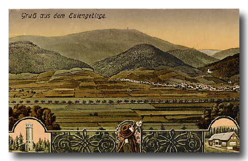 >> Das Eulengebirge besteht aus einem Gneisrücken, welcher sich in einer Länge von 36 km von Südosten nach Nordwesten erstreckt. Seine Richtung liegt im Zuge der Sudeten, jedoch ist das Gebirge etwas nach der schlesischen Eben hinausgeschoben. Es verbindet das Gebirge der Grafschaft mit dem Waldenburger Bergland und reicht vom Durchbruch der Neiße bei dem Städtchen Wartha bis zum Tale der Weistritz. An den Längstälern findet man nur drei, und zwar diejenigen von Wiltsch, Wüstewaltersdorf und Mühlbach, dagegen durchzieht eine große Anzahl von Quertälern die Berge. In den hauptsächlichsten dieser Quertäler übersteigen gut gepflegte, dabei romantische und an Aussichten reiche Kunststrassen das Gebirge. Diese Passstrassen finden wir bei Silberberg (580m), weiter zwischen Langenbielau und Neurode über das Volpersdorfer Plänel (710m), zwischen Peterswaldau-Steinkunzendorf und Neurode über das Hausdorfer Kreuz mit der Zimmermannsbaude (800m), endlich zwischen Peterswaldau, Steinseifersdorf und Wüstewaltersdorf über die Sieben Kurfürsten (756m) mit der gleichnamigen Baude.