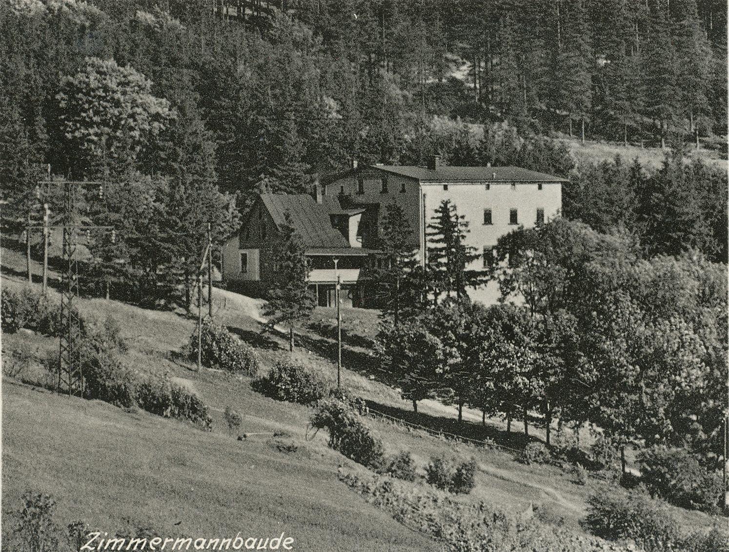 Die Zimmermannsbaude lag unterhalb des Hausdorfer Kreuzes auf auf 800m Höhe.