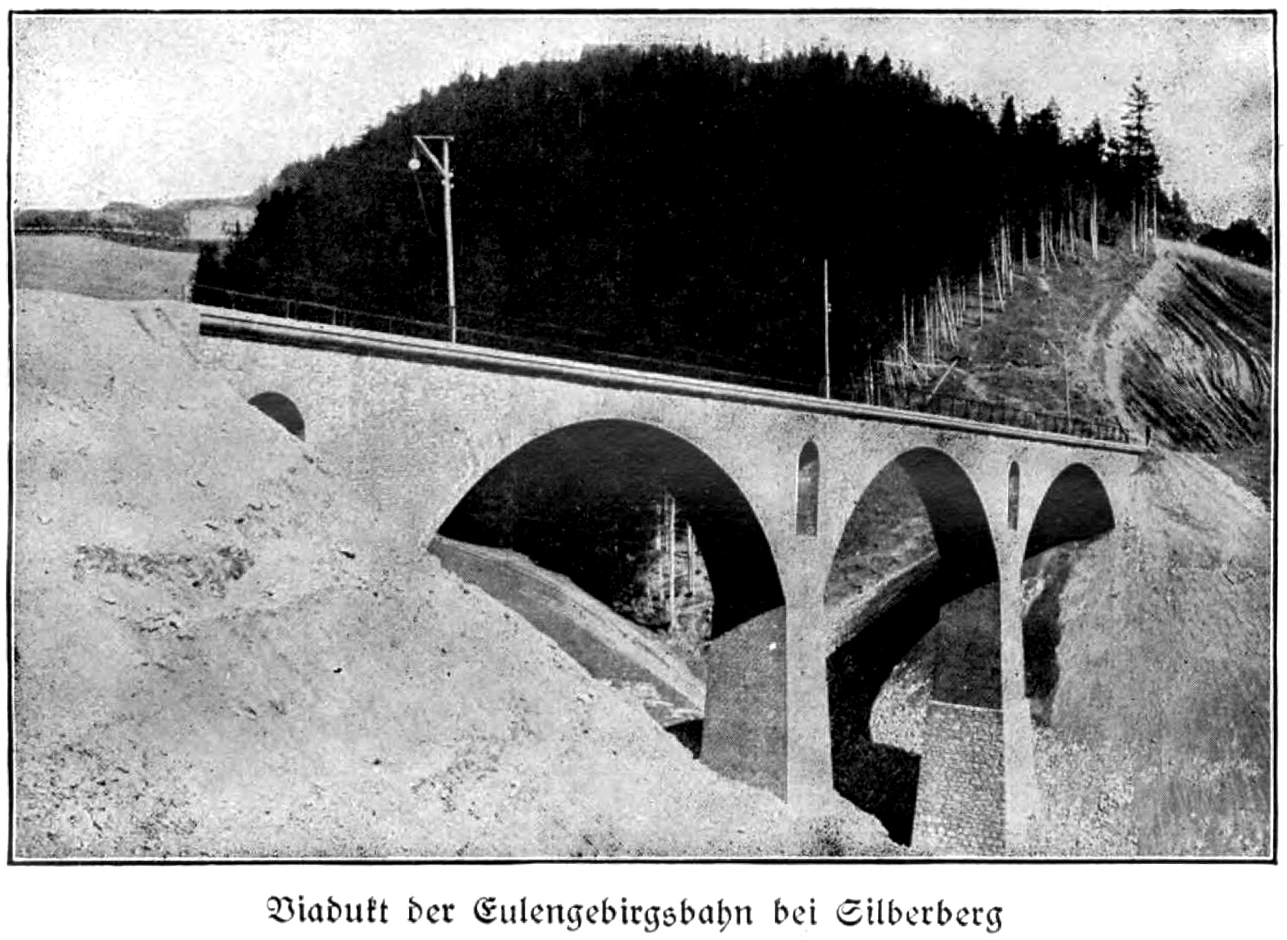 Außerdem mußten zwei aufwendige Viadukte von reichlich 80 m Länge und 28 m Höhe am Herzogswalder Tal über den Schmiedegrund und den Herbstgraben errichtet werden. Hinzu kamen auf dem Gebirgsscheitel zeitaufwendige Sprengarbeiten mit rund 90.000 Kilometer Felsbewegung, um genügend Platz für den Bau der zweigleisigen Haltestelle Silberberg-Festung zu erhalten.