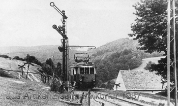 Während 1947 nur zwei Personenzug-paare verkehrten, waren es Mitte der fünfziger Jahre bereits wieder acht. In der Regel war der Triebwagen (je nach Bedarf auch mit einem Beiwagen) im Einsatz. Die E-Lok verkehrte nur ersatzweise während den Reparatur- und Untersuchungszeiten des Trieb-wagens oder mit Güterzügen. Diese bestanden bergwärts aus zwei Wagen älterer Bauart oder aus einem Neubau-wagen mit größerer Tragfähigkeit und talwärts aus zwei bis drei Wagen.