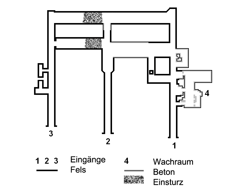 Auch noch ungeklärt ist, was es mt den Belüftungsstollen auf sich hat, die sich ca. 4 m über dem Wachraum befinden.
