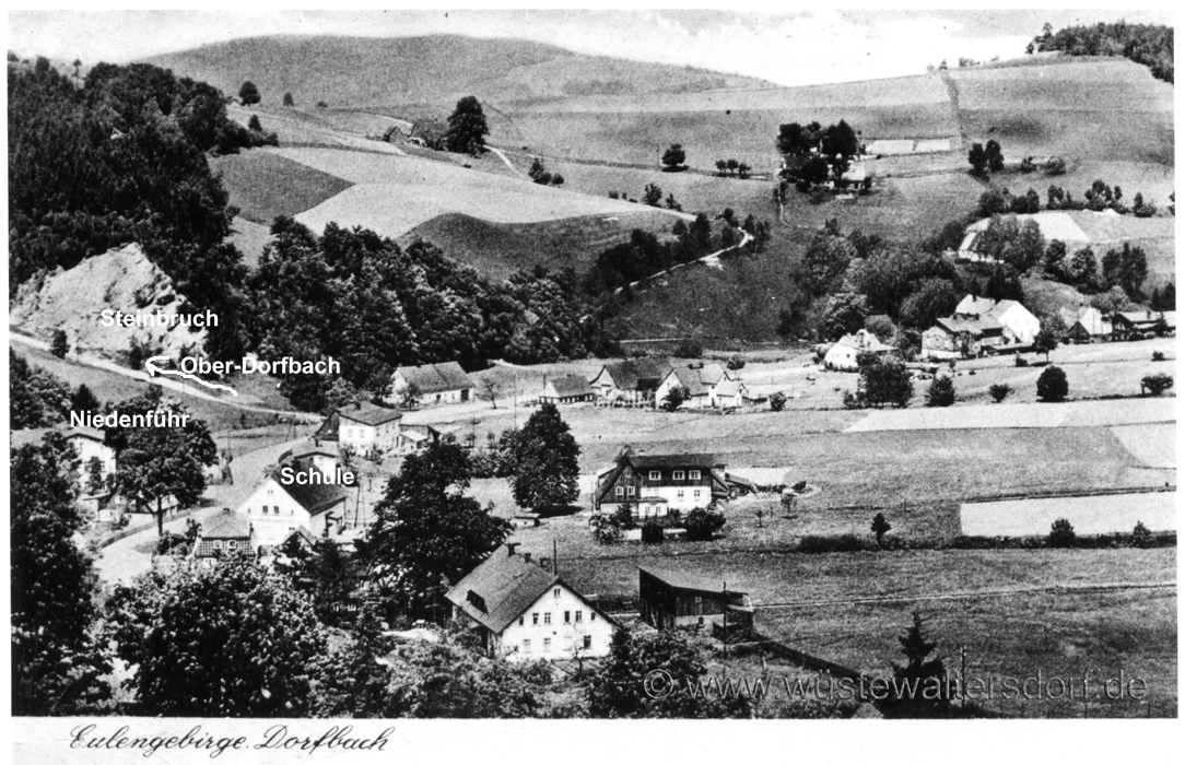 Blick über Dorfbach, mit vorn rechts Niedenführ`s Gasthaus |