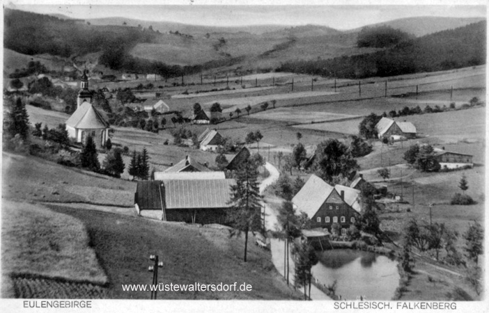 Schlesisch Falkenberg, mit Kirche und Falkenbaude |