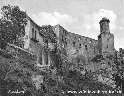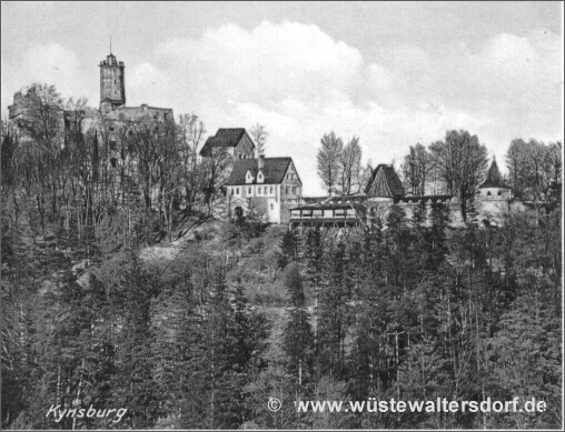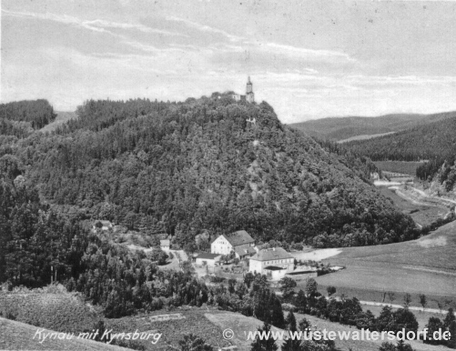 Kynau und die Kynsburg auf einer colorierten Graphik von 1810 | |