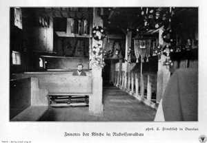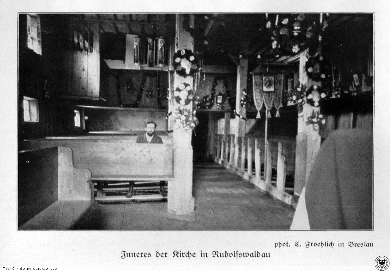 Keine andere Kirche unserer Heimat enthielt so viel Ortsgeschichte wie das Holzkirchlein von Rudolfswaldau. In Notzeiten vertrauten gerade in diesem Dorfe hoch in den Bergen die Menschen ihren Kummer ihrem Gotteshause an.