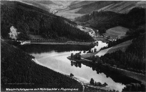 | Überlauf der Staumauer 1916 | mit Doppeldecker | |