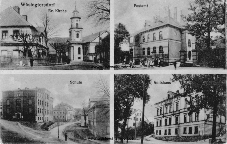 Wüstegiersdorf, ev. Kirche, Schule Postamt und Amtshaus | |