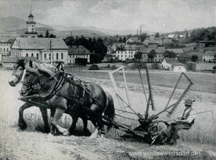 Wüstegiersdorf, Erntezeit mit Blick auf ev. Kirche | |