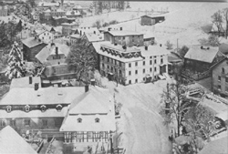 Blick vom Kirchturm der ev. Kirche, in der Mitte des Bildes der Gasthof zur Hoffnung |