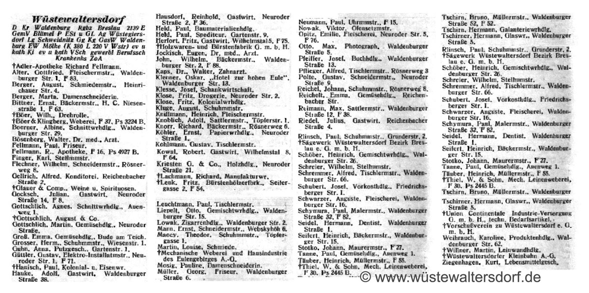 Einwohner- und Gewerbeverzeichnisse von Wüstewaltersdorf mit zugehörigen Ortsteilen