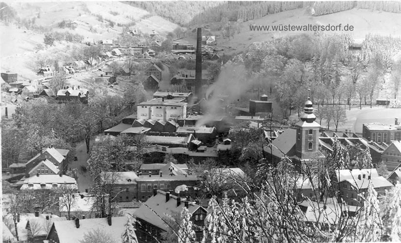 Winter in Wüstewaltersdorf, mit Blick auf die Kirche, die Fabrik und Zedlitzheide | |
