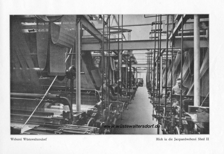 *) "Shedhalle" - die bis in die 50er Jahre für die Weberei typische Bauform. Das Charakteristikum der Shedhalle mit ihrer sägeförmigen Silhouette ist die Aneinanderreihung gleichförmiger, schuppenähnlicher Bauelemente (engl. shed = Schuppen). Die großen Glasfenster in den Dächern sind in der Regel nach Norden ausgerichtet, um für eine gleichmäßige Beleuchtung zu sorgen und eine Aufheizung des Inneraums durch Sonneneinstrahlung zu vermeiden. Die ebenerdige Shedhalle garantiert im Gegensatz zu mehrgeschossigen Bauten eine erschütterungsfreie Aufstellung der Maschinen.