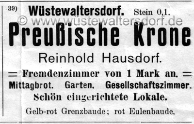 Eulenbaude (Pächter Fritz Nicolaus), wird unter Post Wüstewaltersdorf geführt