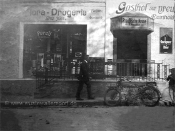 In der ehemaliger Brennerei früher Drogerie von Herrn Prause und zuletzt Kfz.-Werkstatt und Elektrogeschäft von Gustav Güttler. 1. Stock großer Saal und Wohnung von Fam. Güttler