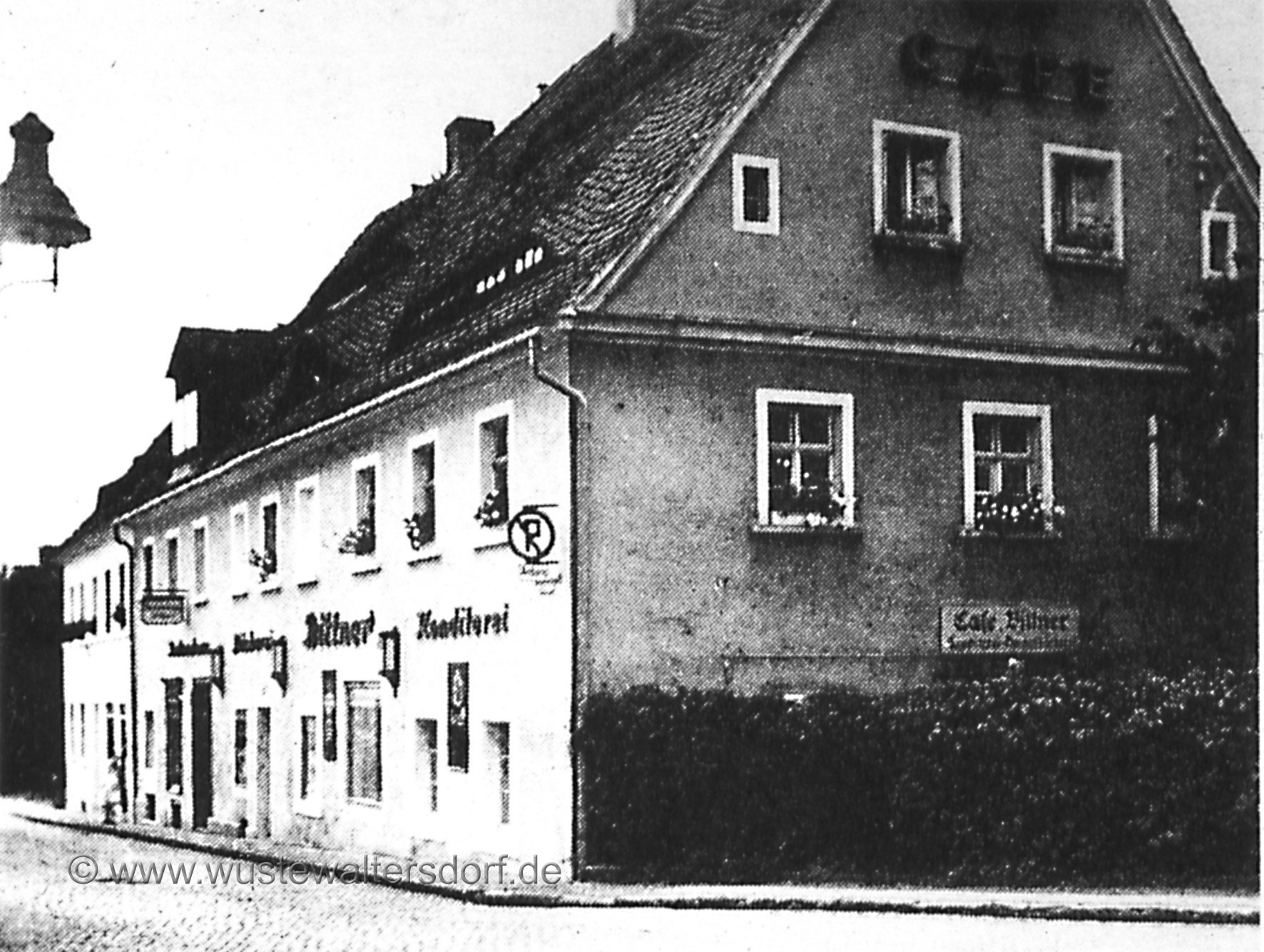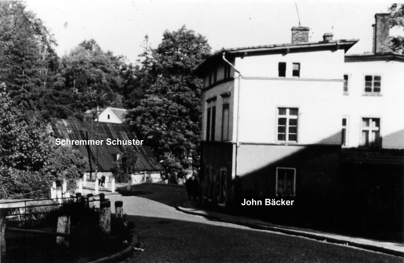 Bäckerei, Konditorei und Cafe von Fritz John und zuletzt Bäckermeister Pohl und der Schuster Schremmler schräg gegenüber