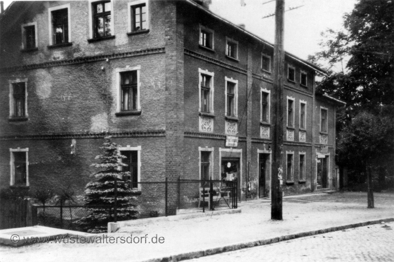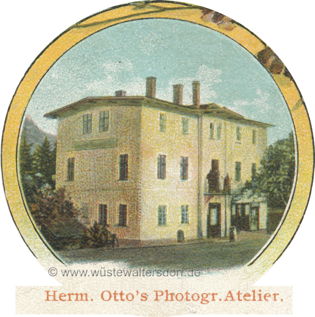 Fotoatelier Hermann Otto, Aufnahme 1902 Waldenburger Str. 5 Um 1880 kleines Haus mit Geschäft, Hermann . Otto kaufte das Grundstück, brachte es auf 2. Stockwerke, richtete Fotoatelier und Druckerei ein, am 1.4. 1892 erschien erstmals der „Bote aus dem Eulengebirge“. Mit seinem Tod ging diese Zeitung ein. Seine Frau betrieb ein Kurzwaren- und Galanteriewarengeschäft.