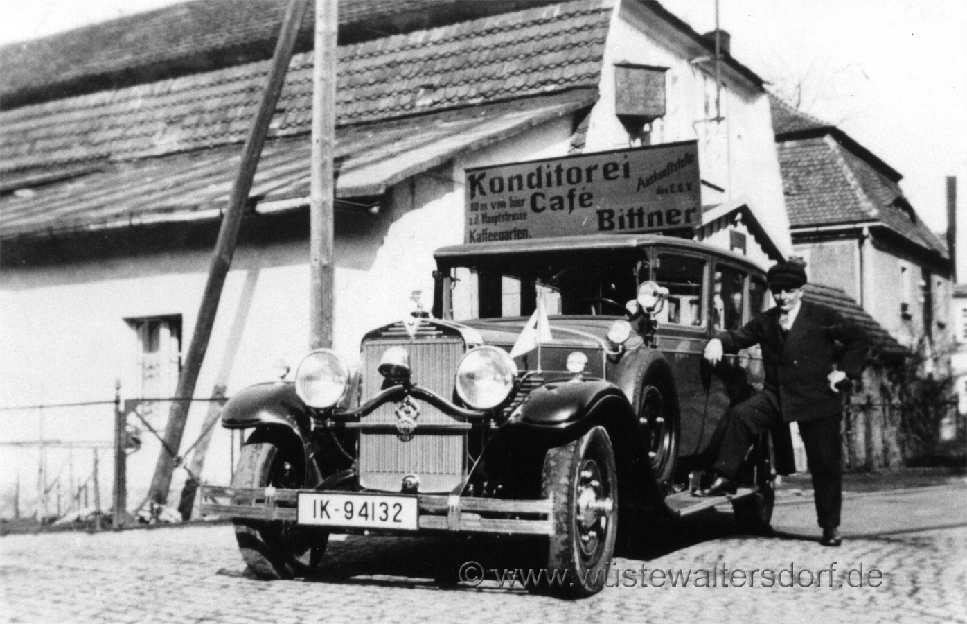 Taxi-Held, im Hintergrund Hinweisschild auf Bittner-Bäckerei und Café, Gartenstr. 9 Foto Verfügung gestellt von H. Neumann |
