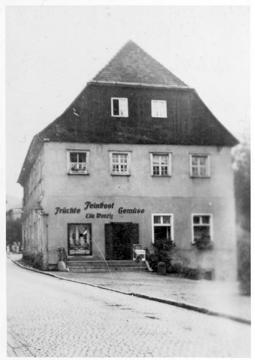 Das Gebäude nach dem Umbau, Foto von 1935 das unteres Stockwerk wurde für ein Lebensmittelgeschäft genutzt |