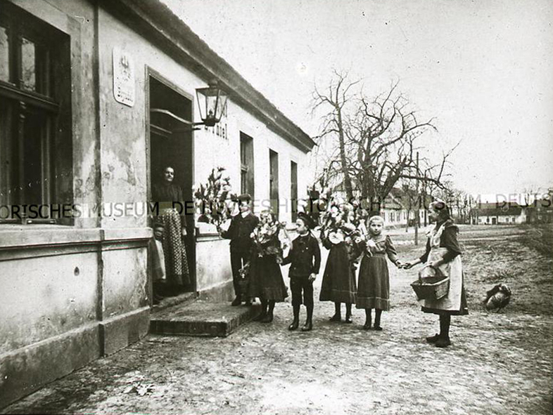 Gegen Mittag kehrten die Kinder todmüde heim, schließlich waren sie schon seit 7 Uhr früh unterwegs gewesen. Stolz öffneten sie dann das Säckchen und leerten den Inhalt auf den Tisch dann aus. Dabei gab es manche überraschung. Nicht nur in Form von Buntstiften oder Heften. Im Eifer war man mit dem Säckchen unvorsichtig umgegangen. Dabei war eines der Eier, eine besondere Kostbarkeit unter den Gaben, gesprungen und ausgelaufen, oder die Lakritze hatte mit dem Schreibheft Bekanntschaft geschlossen. Die Tränen, die sich dann einstellten, wurden tapfer unterdrückt, denn zu viele schöne Dinge gab es zu bewundern, die ein Kinderherz höher schlagen lassen. Vater und Mutter mußten an die Freude mit teilnehmen. Ganz rot vor Glück war das Gesicht des Kindes dabei; und am Abend beim Schlafengehen träumte es bereits vom "Summer" im nächsten Jahr. Unvergessene, glückliche Kinderzeit in Schlesien.<<
