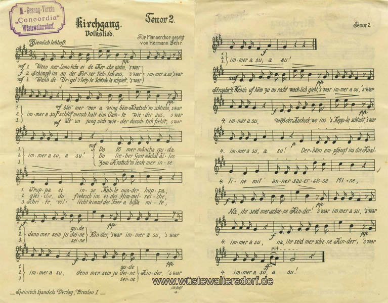 Das Notenblatt stammt von meinem Grossvater, der Mitglied dieses Gesangsvereins war, wie auch mein Urgrossvater und andere Familienmitglieder.