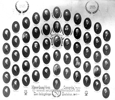 Zum fünfzigjährigen Bestehen (1875 - 1925) wurde ein Gruppenbild der Sänger mit Dirigenten angefertigt.