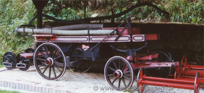 Jeder Pferdebesitzer war verpflichtet, bei Alarm auf kürzestem Wege am Gerätehaus zu erscheinen.Der erste bekam eine Sonderprämie von der Gemeindeverwaltung. Anfangs hatten wir an Geräten: 1 Handdruckspritze für Pferdebespannung, 1 kleine Handdruckspritze, die von Mannschaften gezogen werden konnte, oder im Winter auf Schlitten, 1 Auszugleiter (mechanisch) für Pferdegespann und einen bespannten Mannschaftswagen.