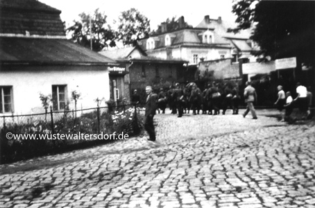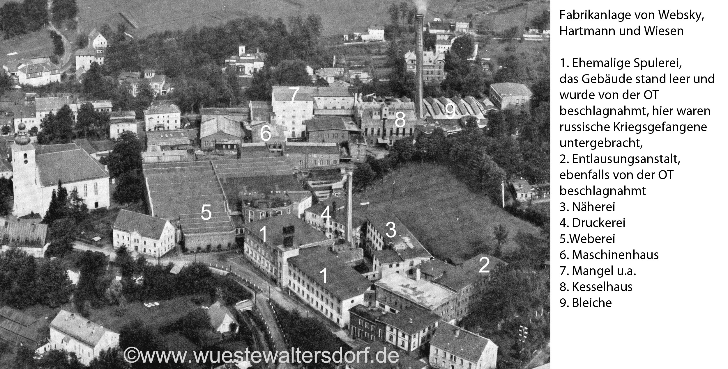 Eine Zeitzeugin berichtet, dass man vom evangelischen Friedhof aus den Hof der Fabrik gut einsehen konnte. Während des Krieges, sie erinnert sich aber nicht mehr an die genauen Jahre, kamen Transporte auf Lastwagen mit Menschen vom Bahnhof, und sie wurden im Hof gesammelt. Noch in ziviler Kleidung, Mänteln und Pelzen, wurden sie ins Fabrikgebäude gebracht. Nach einer Weile kamen sie in Häftlingskleidung aus den Gebäuden, und wurden in einem Marsch durch das Dorf auf den Wolfsberg gebracht. Im Frühjahr und Sommer 1943 kamen weitere "Häftlinge" mit Güterzügen im Bahnhof an und wurden sofort hinter dem Bahnhof den Berg hinaufgeführt, ebenfalls Richtung Uhlen- und Wolfsberg. - Sie kamen vorrangig aus dem KZ Groß-Rosen. Zur Unterbringung wurden mehrere Lager in den umliegenden Bergen errichtet (siehe auch "Objekt Riese").
