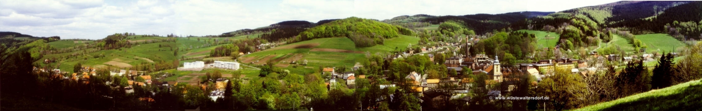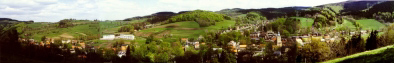Blick Richtung Osten auf die Kirche und Zedlitzheide. Die weissen Gebäude links im Hintergrund sind neuerbaute Wohnblocks. Weiter links in Hintergrund kann man den Flachbau der neuen Schule erkennen.
