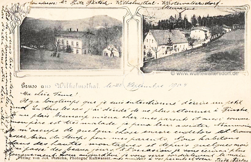 Lage: Wilhelmsthal liegt östlich von Nieder-Wüstewaltersdorf auf einer Anhöhe.